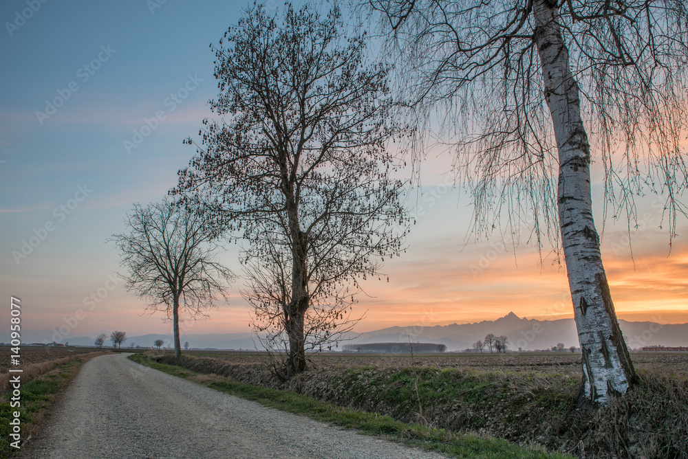 Fotografia Strada Di Campagna Al Tramonto Con Monviso Sullo